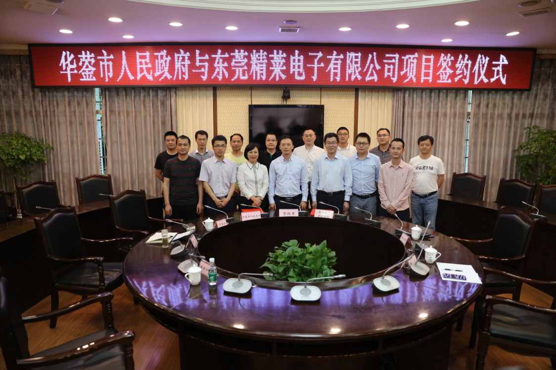 2019年4月19日上午,风和日丽的中国西部华蓥市政府接待厅已经坐满了当地政府各级部门的负责人。今天中午11点将在这里举行华蓥市人民政府与东莞市精莱电子在当地新建制造基地的项目的签约仪式。